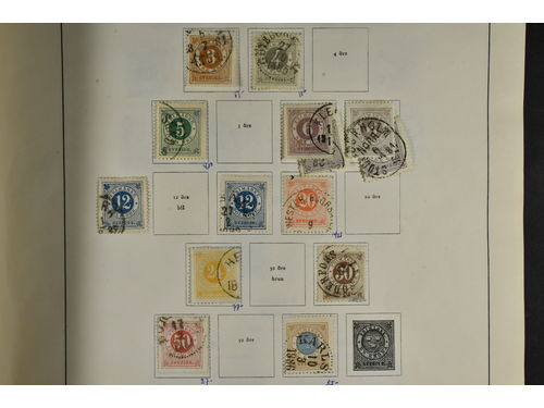 Sweden. Collection/accumulation used 1800s–1900s in box. One album which contains of Coat-Arms, Oscar II and so on. The..