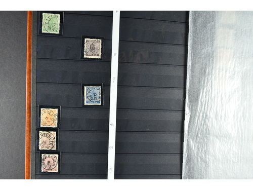 Sweden. Lot ★/⊙ 1870s–1920s on stock card. E.g. F25c, 32 cancelled GÄLLARYD in violet colour (R5 according to SSPD), L20v2 (carton paper) and M1 in two copies (incl. one used). Please inspect. Somewhat mixed quality. (7) Show less