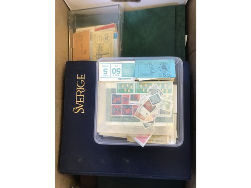 Sweden. ★★/★/⊙. Removal box with 1000s of stamps in albums and envelopes etc. Containing much ** stamps and booklets, FDCs and also some other countries. Approx. 17 kg. Show less