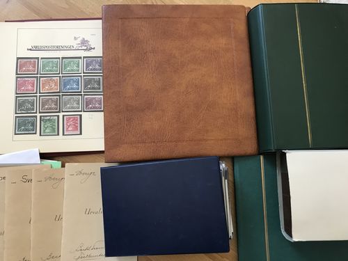 Sweden. ★★/★/⊙. Box with e.g. **/* in binder, some covers, match labels, autographs, some other countries incl. German bank notes, etc. Approx. 6 kg. Show less