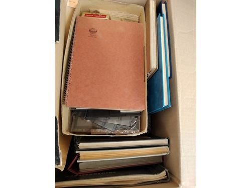 Sweden. Miscellaneous, collection/accumulation. Brown box with slot machine booklets, approval booklets, a stockbook wit..