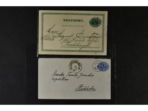 Sweden. Cancellations, collection FOREIGN PMKS on covers and postcards on visir leaves. British, Danish, Finnish and Ger.. Read more Sweden. Cancellations, collection FOREIGN PMKS on covers and postcards on visir leaves. British, Danish, Finnish and German cancellations. All are from the Oscar II period, except for one cover cancelled in BERLIN in 1923. (19) Show less