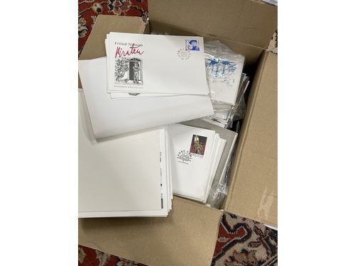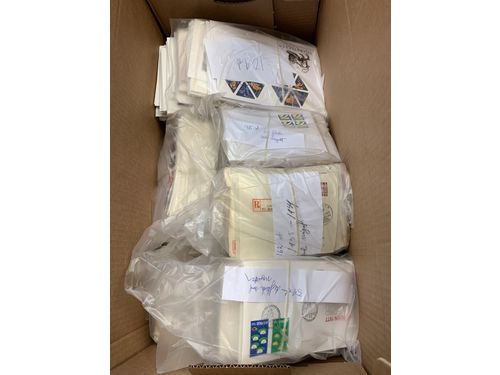 Sweden. FDCs, collection/accumulation 1900s–2000s in box. The box contains of address cards, letter cards, and other postal stationery items. The FDCs are from 1938-2004. Please see a selection of scans at www.philea.se. Mostly fine quality. Approx. 26 kg. Show less