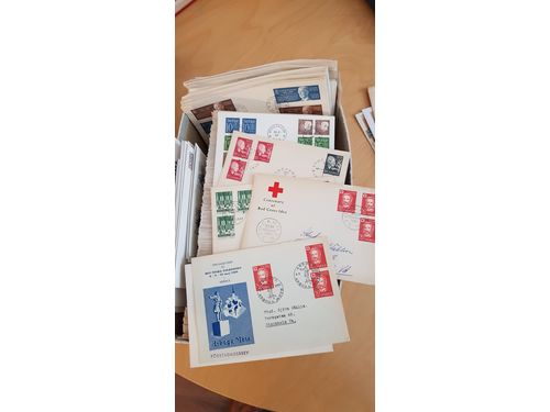 Sweden. FDCs, collection/accumulation 1936–95 in box. Many BB-pairs in blocks of four. Approx. 11 kg.