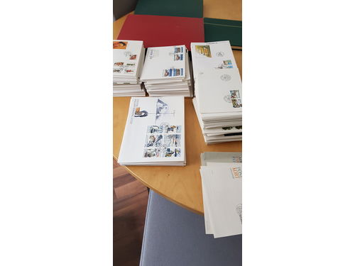 Sweden. FDCs, lot 1970–2001 in box. 1980–1999 seemingly complete, good condition.