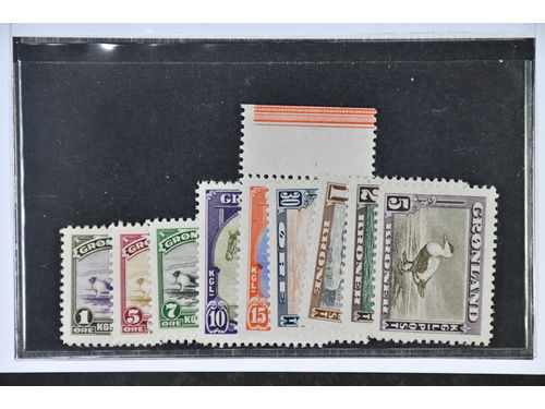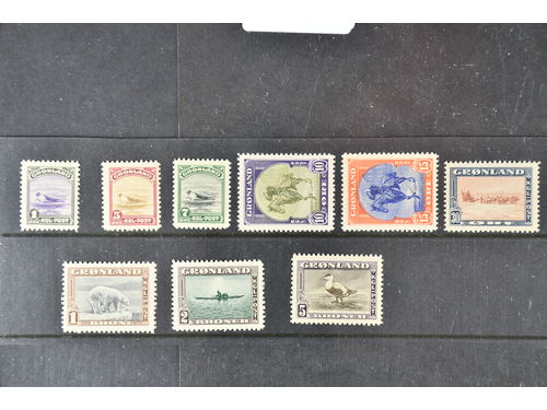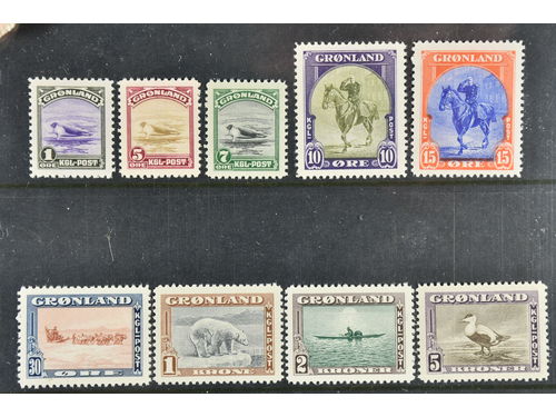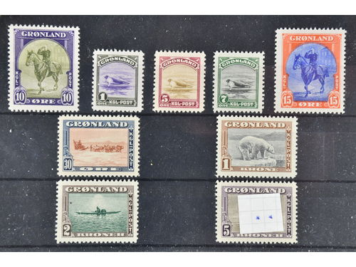 Greenland. Facit 10–18 ★★, 1945 Different designs. Cpl. SET (9) in very fine condition. SEK 3000 Show less