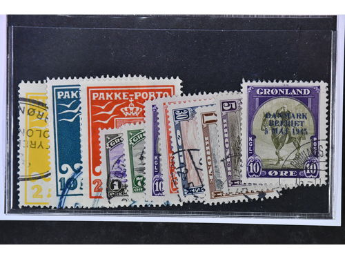 Greenland. Lot used 1915–1945 on stock card. P5, P7, P9, 10, 12–16, 18 and 22. Good quality. F ca. 5100 (11)