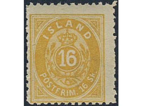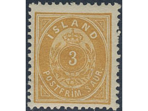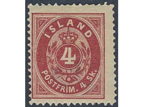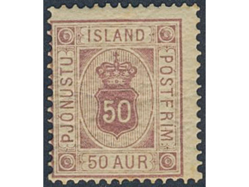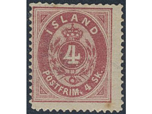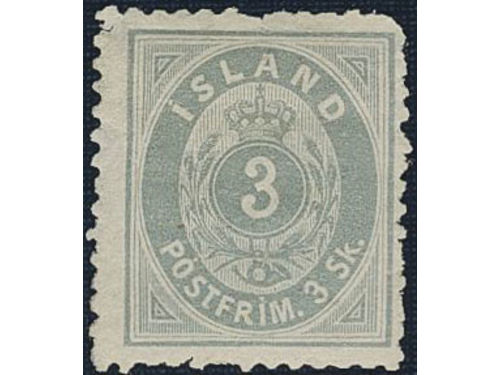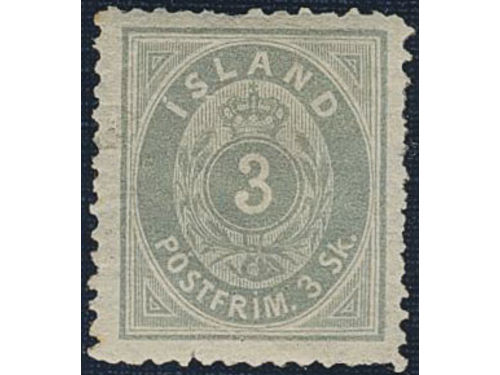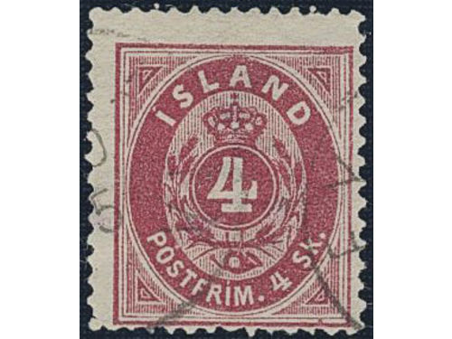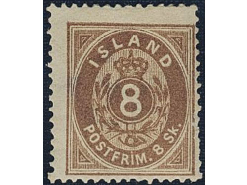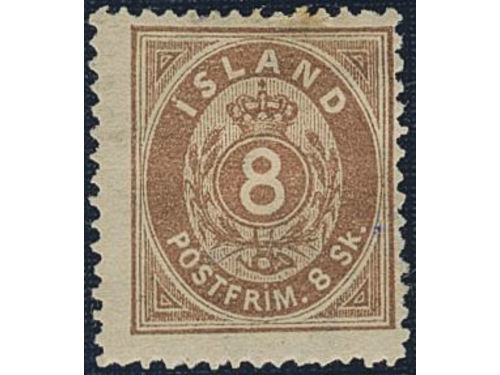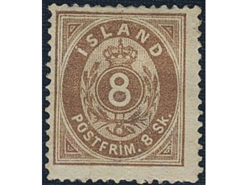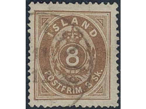 Iceland. Facit 3 used, 1873 Skilding values 8 sk brown, perf 14 × 13½. Reperforated space filler with small owner mark on reverse. SEK 10000 Show less