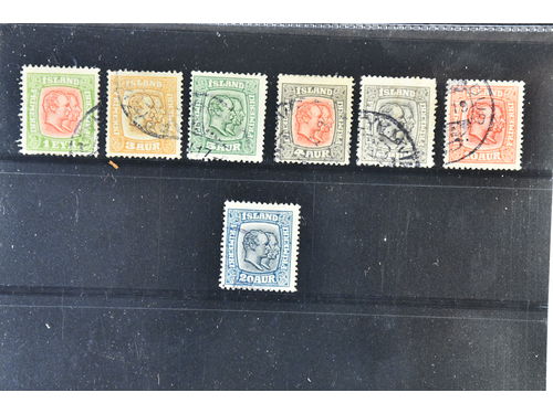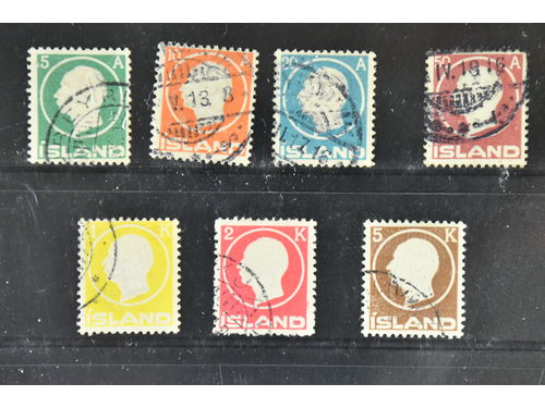 Iceland. Facit 91–97 used, 1914 Two Kings SET watermark cross (7). SEK 1500 Show less