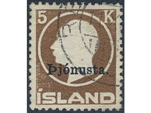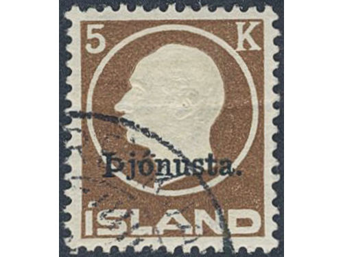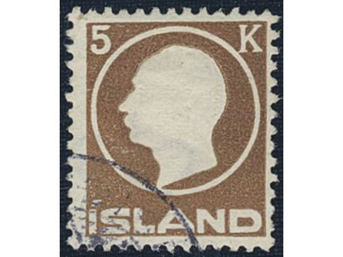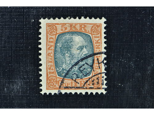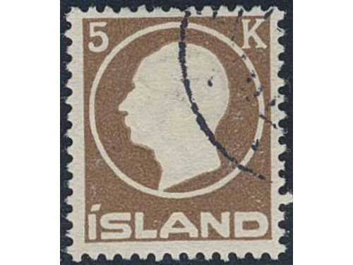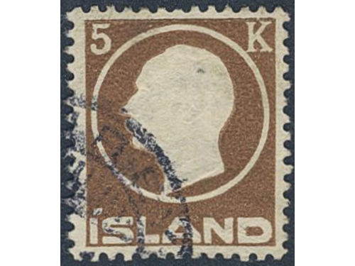 Iceland. Facit 120 used, 1912 King Frederik VIII 5 Kr brown. Uneven perf. SEK 1900 Show less