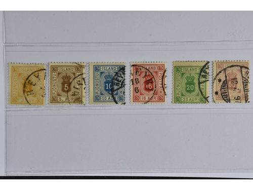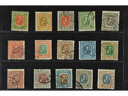 Iceland. Facit 76–90 used, 1907 Two Kings SET watermark crown (15). SEK 4500