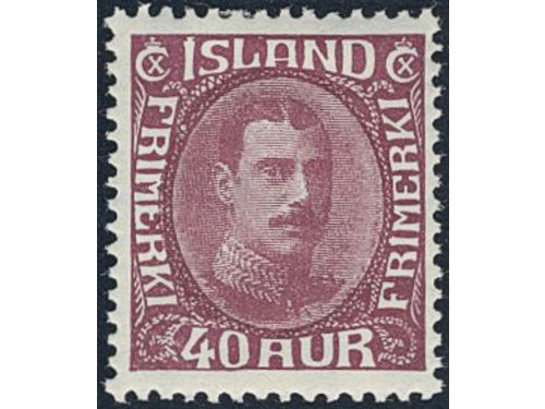 Iceland. Facit 154 ★, 1932 King Christian X 40 aur lilac close, unbroken lines. SEK 2000