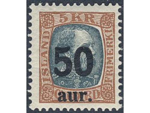 Iceland. Facit 102 ★★, 1925 Surcharge on Christian IX 50 aur / 5 Kr grey/red-brown. SEK 1700