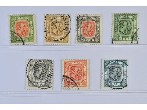 Iceland. Facit 91–97 used, 1914 Two Kings SET watermark cross (7). SEK 1500