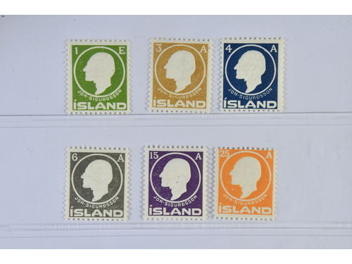 Iceland. Facit 108–13 ★★, 1911 Jón Sigurdsson SET (6). 1 E with inverted wmk. SEK 1400 Show less