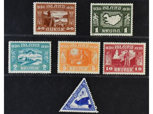 Iceland. Facit 183–88 ★★/★, 1930 The Parliament SET 50 aur to 10kr and 10 aur air mail (6). 2 Kt *, the others **. SEK 6300