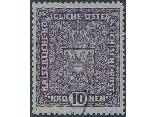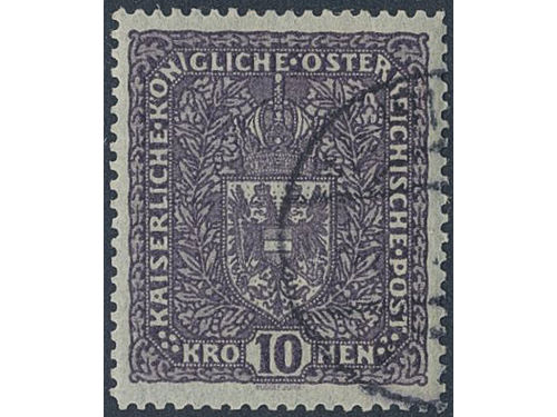 Austria. Michel 207 I used, 1917 Coat-of-arms 10 Kr dark brown-violet 25 × 30 mm. EUR 150 Austria. Michel 207 I used, 1917 Coat-of-arms 10 Kr dark brown-violet 25 × 30 mm. EUR 150 Show less