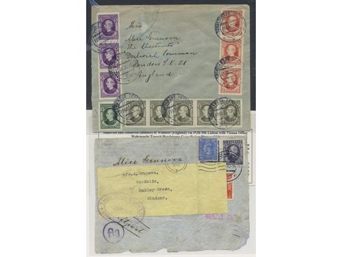 Britain. Covers, covers. Incoming mail. One (only cover front) sent from Slovakia to an underground Lisbon address, re-.. Read more Britain. Covers, covers. Incoming mail. One (only cover front) sent from Slovakia to an underground Lisbon address, re-addressed to London by THOS.COOK with a British 2½ d perfin stamp added, in 1942. Also another cover sent from Slovakia to London in 1939. Show less