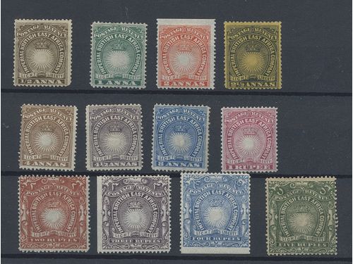 British East Africa. SG 4–19 ★, 1890 group ½a to 5R (12 different). GBP 150 British East Africa. SG 4–19 ★, 1890 group ½a to 5R (12 different). GBP 150 Show less