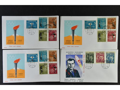 Albania. FDCs. Small lot. 10 examples of Mi 657-61A and one 647-49 purple overprint. Not listed in Michel. Albania. FDCs. Small lot. 10 examples of Mi 657-61A and one 647-49 purple overprint. Not listed in Michel. Show less