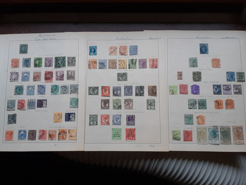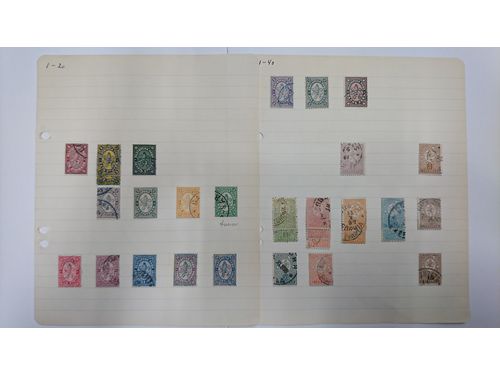 Australia. Accumulation used 1880s–1990s. Duplicate compilation on six stockbook pages, 1913-1930s in vast majority. Som.. Read more Australia. Accumulation used 1880s–1990s. Duplicate compilation on six stockbook pages, 1913-1930s in vast majority. Some Queensland and NSW appear. Incl are also a collection Postage due on two album pages. The entire lot is presented at www.philea.se. (approx. 500) Show less