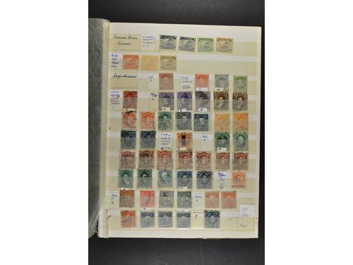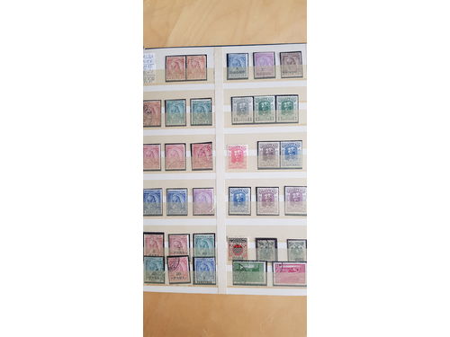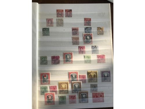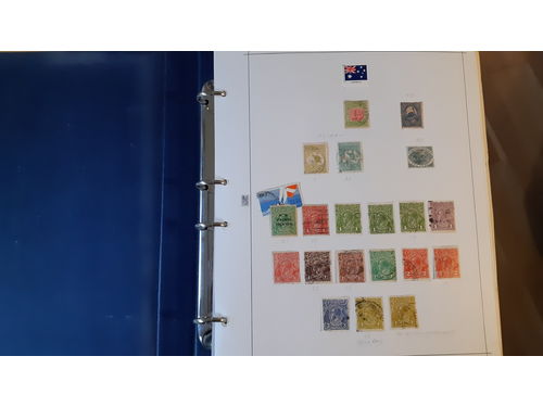 British commonwealth. ★★/★/⊙. Interesting box with stamps in eight albums + leaves incl. e.g. good Canada and Australian.. Read more British commonwealth. ★★/★/⊙. Interesting box with stamps in eight albums + leaves incl. e.g. good Canada and Australian states, India, Hongkong, Ceylon, Straits Settlements, Caribbean Islands and some Africa, etc. Incl. several classic issues. Approx. 10 kg. Show less