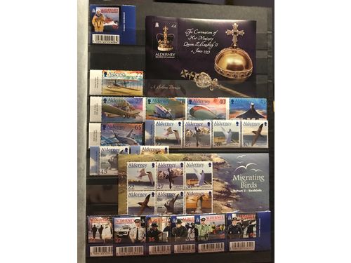 Britain, Alderney. ★★. Collection 1983–2006 (few later) in stockbook incl. 17 souvenir sheets and five prestige booklets.. Read more Britain, Alderney. ★★. Collection 1983–2006 (few later) in stockbook incl. 17 souvenir sheets and five prestige booklets, etc. Mi approx. 700 Euro. (280) Show less