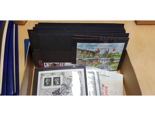 Britain. Accumulation ★/(★) 1900s in box. Three boxes filled with glassine envelopes with stamps. Michel number on most.. Read more Britain. Accumulation ★/(★) 1900s in box. Three boxes filled with glassine envelopes with stamps. Michel number on most of the envelopes. Additionally eight leaves with cancelled stamps, some stockcards and a commemorial book "Royal Mail Special Stamps 1985". Mixed quality. (Thousands) Show less
