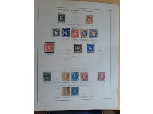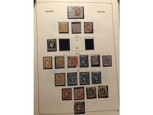 Romania. Mostly used. Collection 1865–1899 on Kabe leaves + two stockbooks with dupl. until 1940s incl. a nice early sec..
