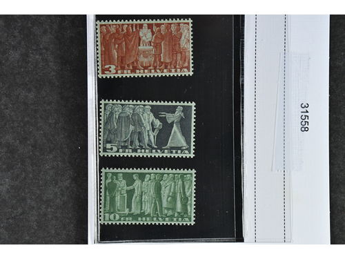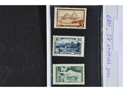 Switzerland. Michel 226–28 ★★, 1928 High Values SET (3). 5 fr with somewhat weakened gum. EUR 1100 Switzerland. Michel 226–28 ★★, 1928 High Values SET (3). 5 fr with somewhat weakened gum. EUR 1100 Show less