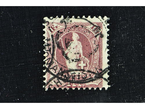 Switzerland. Michel 63D used, 1882 Standing Helvetia 1 Fr lilac perf 11½ × 12. EUR 300 Switzerland. Michel 63D used, 1882 Standing Helvetia 1 Fr lilac perf 11½ × 12. EUR 300 Show less