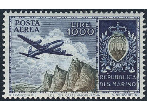 San Marino. Michel 512 ★★, 1954 Air mail 1000 L multicoloured. EUR 140 San Marino. Michel 512 ★★, 1954 Air mail 1000 L multicoloured. EUR 140 Show less