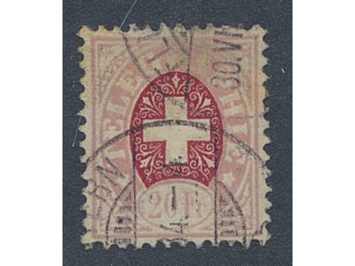 Switzerland. Telegraph Michel 19 used, 1881 Coat-of-Arms 20 Fr pale brownish carmine/pale rose on granite paper. EUR 200 Switzerland. Telegraph Michel 19 used, 1881 Coat-of-Arms 20 Fr pale brownish carmine/pale rose on granite paper. EUR 200 Show less