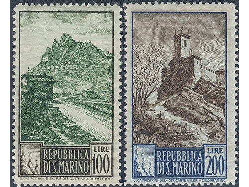San Marino. Parcel Michel 33–34 ★★, 1948 New value overprint SET (2). 200 L with minor short perf. EUR 400 San Marino. Parcel Michel 33–34 ★★, 1948 New value overprint SET (2). 200 L with minor short perf. EUR 400 Show less