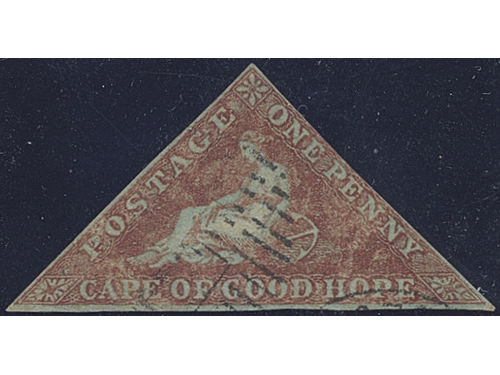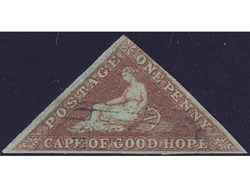 South Africa, Cape of Good Hope. Michel 1 Ixa or SG 3 used, 1853 Allegory 1 d brick-red on slightly blued paper. Near cut on right side. EUR 300 South Africa, Cape of Good Hope. Michel 1 Ixa or SG 3 used, 1853 Allegory 1 d brick-red on slightly blued paper. Near cut on right side. EUR 300 Show less