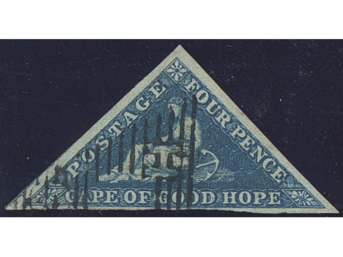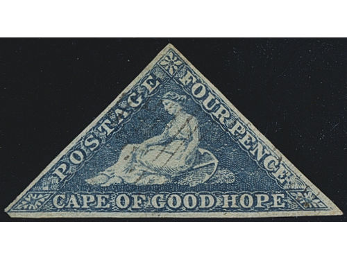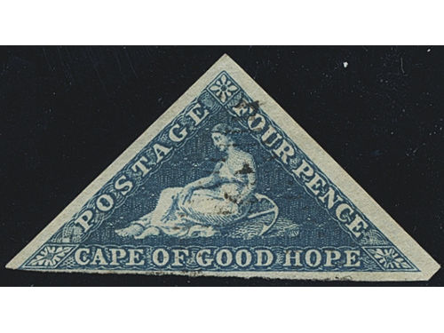 South Africa, Cape of Good Hope. Michel 2 Iwa or SG 2 used, 1853 Allegory 4 d deep blue on deeply blued paper. EUR 220 South Africa, Cape of Good Hope. Michel 2 Iwa or SG 2 used, 1853 Allegory 4 d deep blue on deeply blued paper. EUR 220 Show less