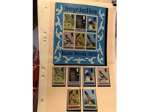 Seychelles. ★★/★/⊙. Mainly **/* collection 1890–1974 on leaves. Apparently ** from 1965 incl. e.g. souvenir sheets 1–3... Read more Seychelles. ★★/★/⊙. Mainly **/* collection 1890–1974 on leaves. Apparently ** from 1965 incl. e.g. souvenir sheets 1–3. Few used incl. some postage due stamps, etc. (>200) Show less