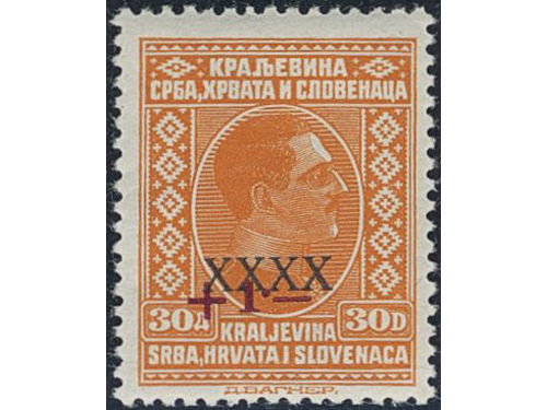 Yugoslavia. Michel 221 ★★, 1928 XXXX overprint 30 din orange. Signed Sieger. EUR 400 Yugoslavia. Michel 221 ★★, 1928 XXXX overprint 30 din orange. Signed Sieger. EUR 400 Show less