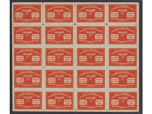 Thailand. Postal seal. Post & Telegraph of Thailand, Officially Sealed in full sheet of 20 labels. Unusual item. Thailand. Postal seal. Post & Telegraph of Thailand, Officially Sealed in full sheet of 20 labels. Unusual item. Show less