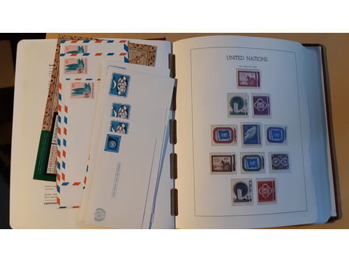U.N. Collection ★★ 1951–1977 in Leuchtturm album. Incl. e.g. s/s 1. Also some additional used stamps and some FDCs. Fine quality. (600) U.N. Collection ★★ 1951–1977 in Leuchtturm album. Incl. e.g. s/s 1. Also some additional used stamps and some FDCs. Fine quality. (600) Show less