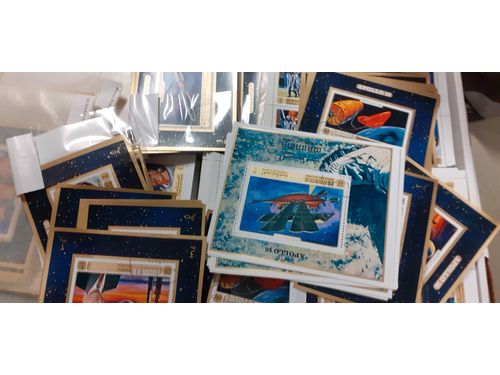 United Arab Emirates, Trucial states. Mostly used. More than 13 kgs of sets (some incomplete but also complete) and souv.. Read more United Arab Emirates, Trucial states. Mostly used. More than 13 kgs of sets (some incomplete but also complete) and souvenir sheets, apparently all listed in Michel, of various thematic sets from e.g. Manama and Fujeira. Enourmous catalogue value. Some ** are also included. Approx. 15 kg. Show less