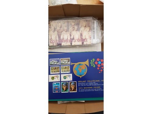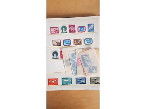 U.N., mixed. Collection ★★ 1951–2009 in four albums in box. A large amount of stamps from UN with three souvenir sheets.. Read more U.N., mixed. Collection ★★ 1951–2009 in four albums in box. A large amount of stamps from UN with three souvenir sheets No 1. Please see a selection of scans at www.philea.se. Fine quality. Approx. 10 kg. (>3000) Show less