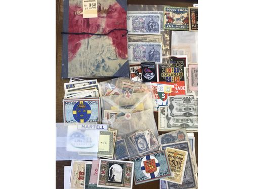 Miscellaneous, Sweden. Box with e.g. 100s of Match labels, old bank notes and some other curiosities incl. also other countries. Show less