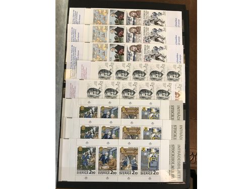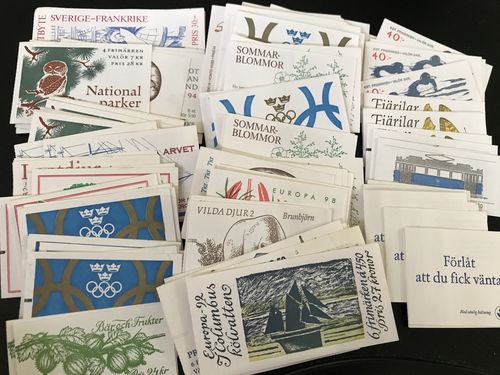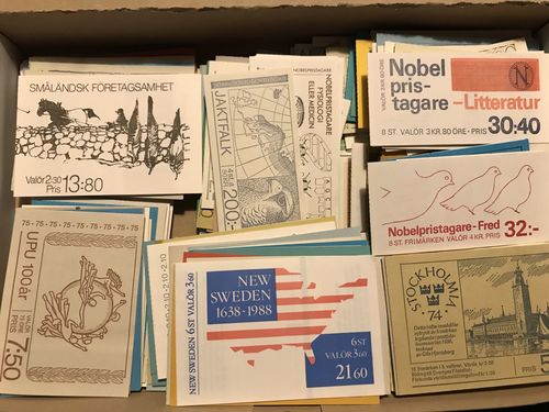 Sweden. Face value, accumulation 1990s in box. Booklets with a face value of 6283 SEK. Please see a selection of scans at www.philea.se. Fine quality. Show less