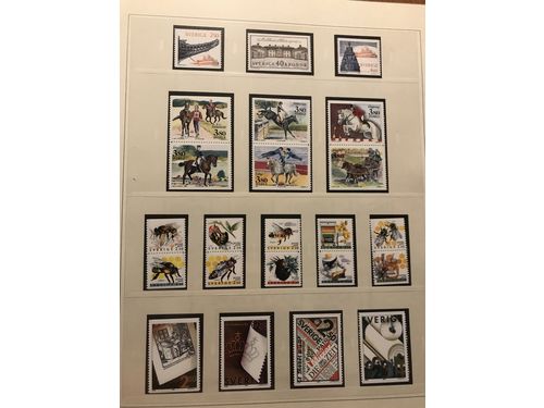 Sweden. Face value, collection 1969–90 in Leuchtturm album with stamp mounts. Face value ca. 2000 + discount stamps. Show less