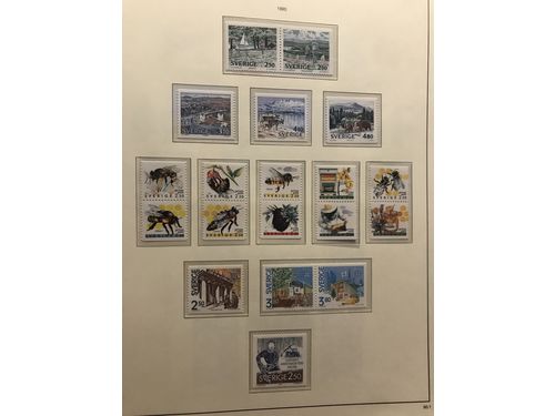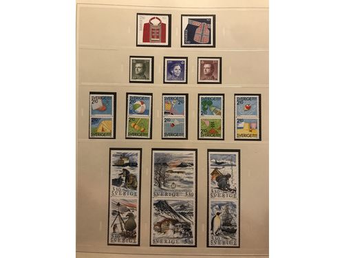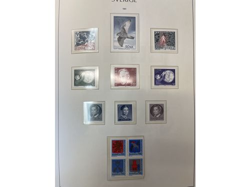 Sweden. Face value. 1960s–1980s in two albums (one Leuchtturm), booklets and also year sets 1976x5+1985. Face value at l..