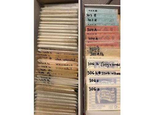Sweden. Face value. Box with booklets sorted by types H311–326. Face value >5300.