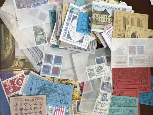 Sweden. Face value. Stamps and booklets mostly 1970's–80's incl. booklet year set 1982 etc. Face value ca 2800.
