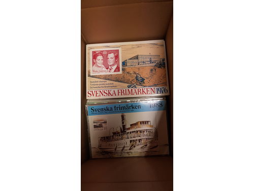 Sweden. Face value. Box with stamps, booklets and e.g. 18 year sets mostly 1950's–80's. Face value ca 3300.
