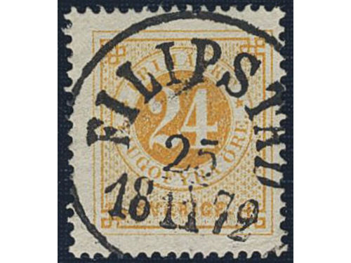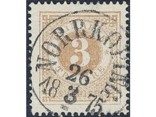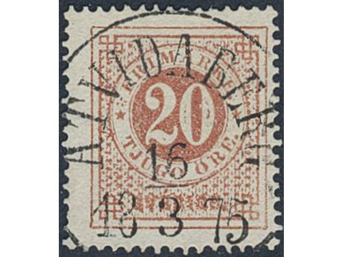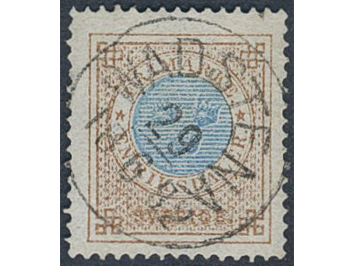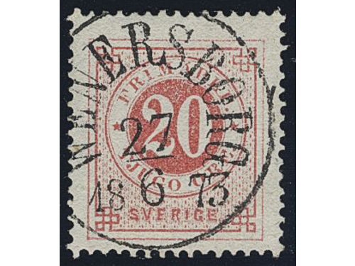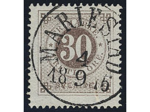 Sweden. Facit 25h used, 30 öre greyish brown. EXCELLENT cancellation MARIESTAD 4.9.1876. Very small pre-printing paper fold ("dragspel"). Show less
